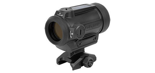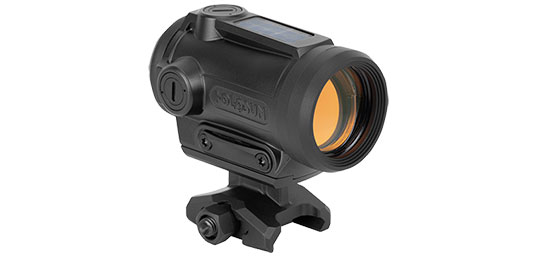 Caratteristiche: L'ARO EVO è disponibile con il reticolo SPR (Special Purpose Reticle), un reticolo di compensazione della caduta del proiettile e telemetria. Specifiche: Durata della batteria: 50.000 ore. Tecnologia Solar Failsafe: l'ARO funziona anche senza batteria. Tecnologia Shake Awake: quando l'ARO rileva un movimento, si accende all'ultima intensità utilizzata. Punto: SPR intensificazione rossa. Batteria: CR2032. Indice di impermeabilità: IPX8. Intervallo di regolazione: +/- 50 MOA. Livello di luminosità: 8 livelli diurni e 4 livelli IR. Valore del clic: 0,5 MOA. Dimensioni del vetro: 1,02''. Telaio: alluminio 6061. Montaggio: 1X 1/3 co-witness.